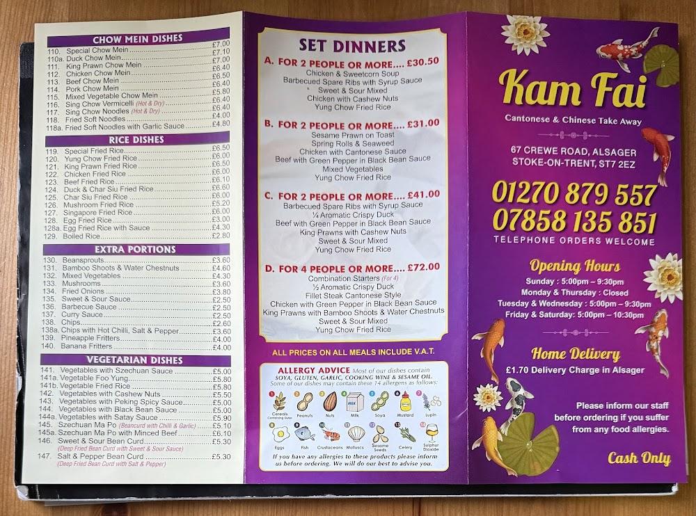 Located at 67 Crewe Rd, Alsager, Stoke-on-Trent, Kamfai shines as a prominent local destination for quick and tasty Chinese cuisine. This takeaway gem thrives within the heart of the community, making it a favorite among locals and visitors alike. The restaurant features an inviting casual atmosphere, perfect for unwinding while enjoying a delicious meal alone or with friends.